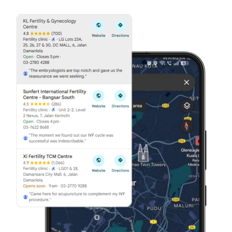 SEO gets your fertility clinic in front of people actively searching for services like “IVF treatment near me” or “fertility specialist in Kuala Lumpur.” When you appear at the top of local search results, you’re far more likely to get the inquiry before another clinic does.